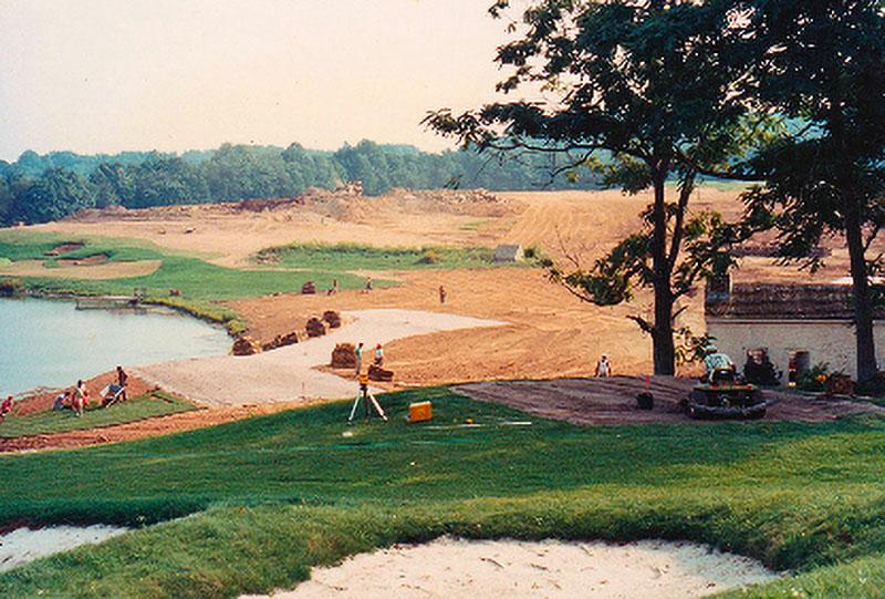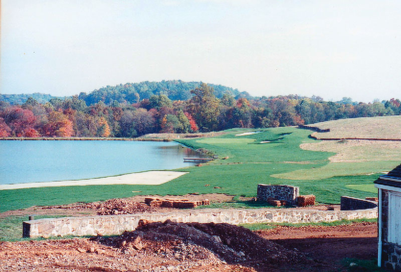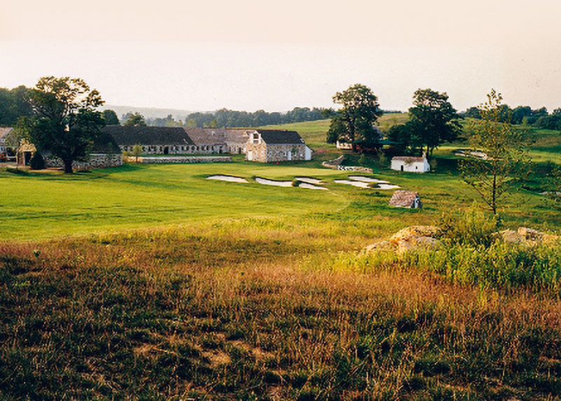 Built an entire Turn-key Construction of ‘top-100 ranked’ world class private 18-Hole golf course with full practice facility located in Elverson, Chester County, Pennsylvania. On an accelerated schedule, performed all civil engineering, permitting, agency/township/PADEP approvals, earthwork, and complete construction of new 18-hole golf course with practice facilities, completed full Grow-in/landscaping of entire course, entrance roadway, parking facilities, and new on-site  sewer plant system.   Upon completion of golf course, proceeded  with design-buildout of the old stone dairy barns into full clubhouse facilities – including mens/womens locker rooms, bar, kitchen with dining/banquet area, meeting rooms, overnight accommodations, pro shop, Harry’s Bar/Grill at the turn, and maintenance buildings.  Golf course construction completed for opening day – within 15 months of breaking ground.   Awarded first golf course project in Pennsylvania to be completed without a violation for storm water management practices during construction.   Under bid the competition by millions of dollars, and completed all golf course construction without one extra cost.